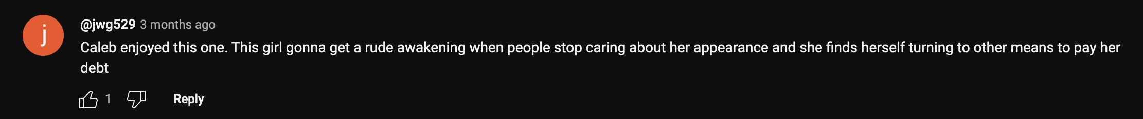 It's unfortunately anticipated at this point that many in his audience would voice their displeasure for any woman confronting Caleb in this way, but the fact that they would still do that, even under the assumption that this person was speaking on behalf of her own lived exploitation, is quite disheartening to see.